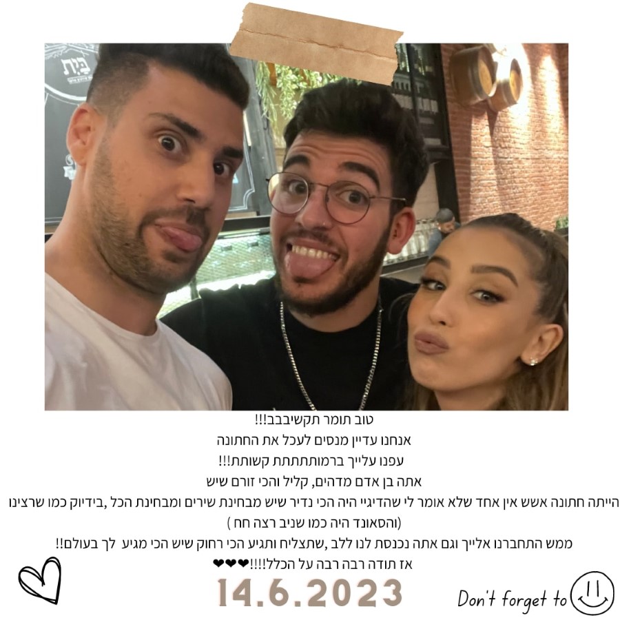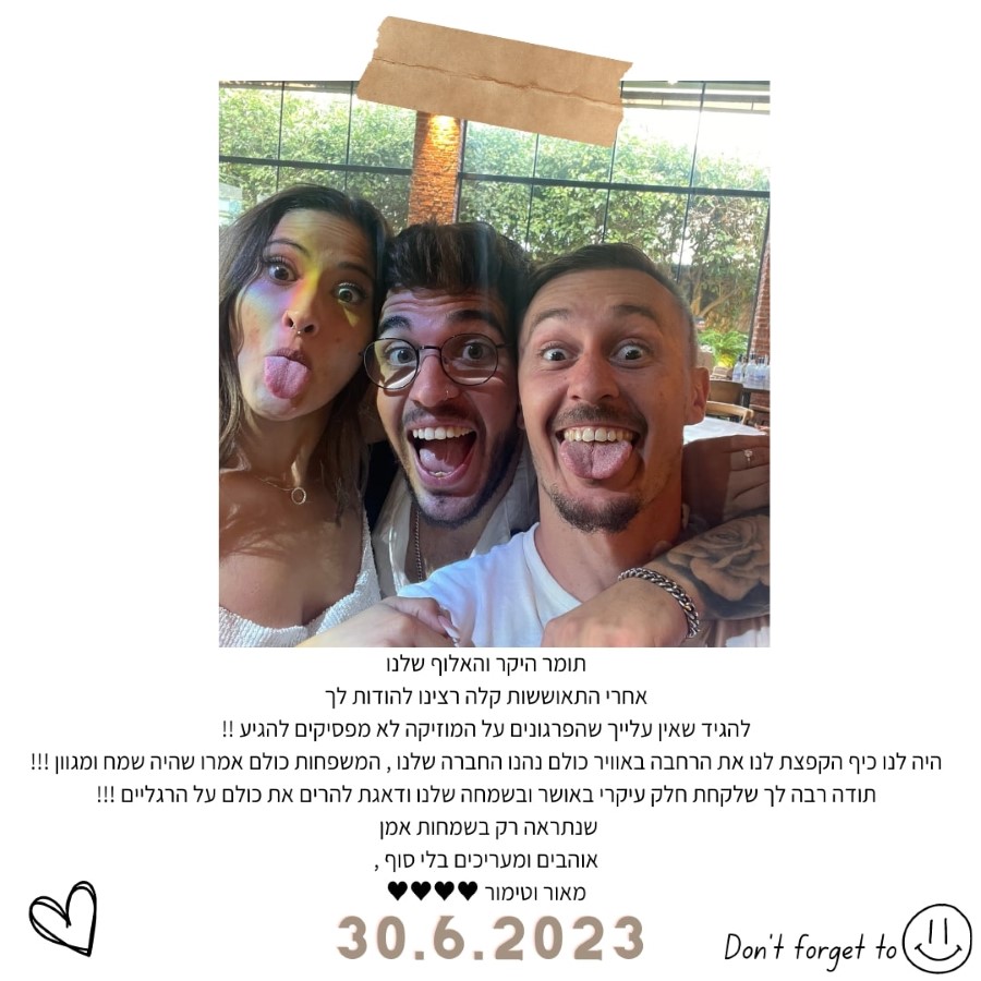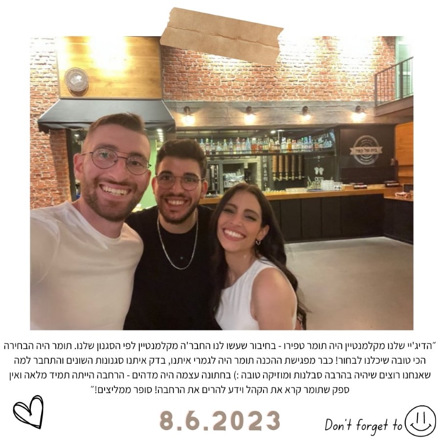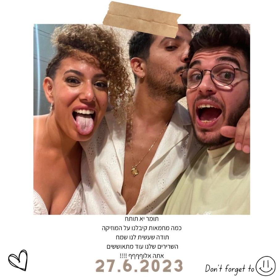 חבילת מוזיקה מורחבת הכוללת את דיג‘י תומר טפירו + סקסופוניסט לקבלת פנים\צלמת סושיאל מקצועית לאורך הערב, 2 פגישות הכנה לאירוע ועמדת דיג‘י מעוצבת+ סט תופים אלקטרוניים לרחבה + ביטוח צד ג' +אפטר פרטי ללא הגבלת זמן, לסטודנטים ב-4,900 ש״ח בלבד במקום 7,500!