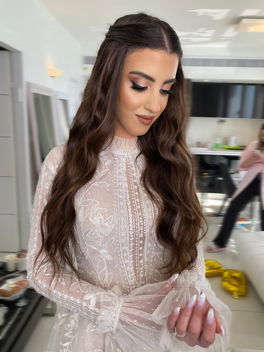 איפור כלה, עיצוב שיער, פגישת תיאום ציפיות, ריסים איכותיים, תוספות שיער 100 גרם 100% שיער טבעי+ערכת טאצ' אפ מפנקת, הגעה למקום ההתארגנות, תכשיטים או אביזר לשיער. יש אפשרות לליווי. לסטודנטיות בלבד - 1,600 ש״ח בלבד במקום 2,500 ש״ח.